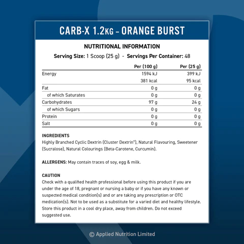 Applied Nutrition Carb X is a premium carbohydrate powder designed to provide fast-absorbing energy for workouts, recovery, and endurance activities. It delivers a precise blend of carbohydrates that help replenish glycogen stores, maintain stamina, and improve overall performance.