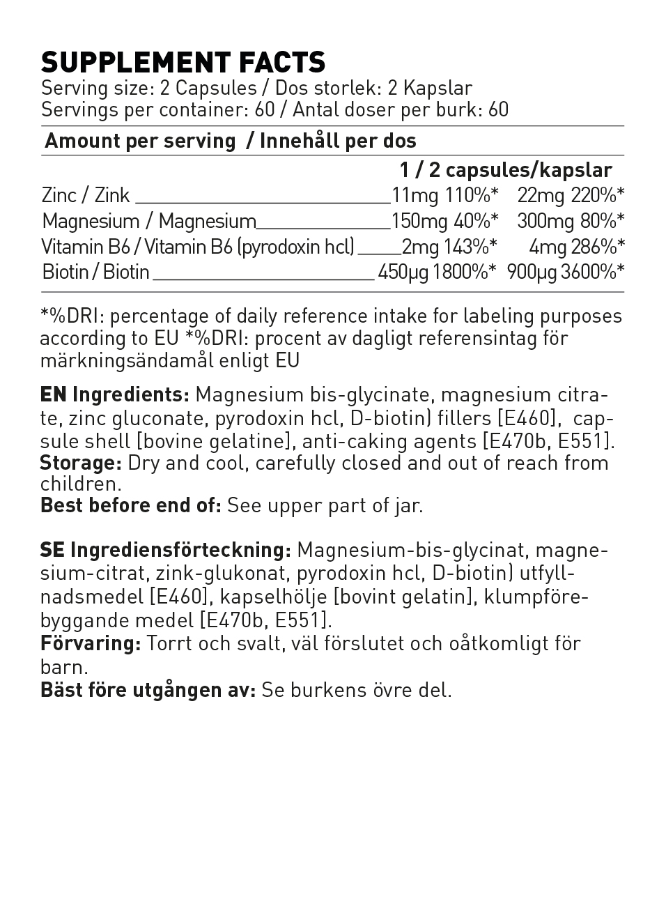 ZMA from Swedish Supplements helps you improve your performance and also benefits the hormone balance in your body.